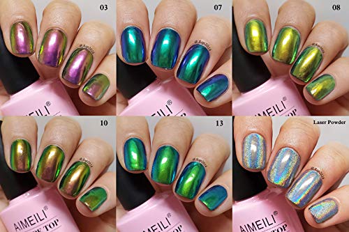 AIMEILI 6 colors Polvo Acrilico Para Uñas Colores Esmalte Uñas Efecto Espejo Arte de Uñas Cromo Pigmento HologrÔfica Manicura Decoración Chrome Laser Rainbow Camaleón Uñas Mirror Nail Glitter Powder