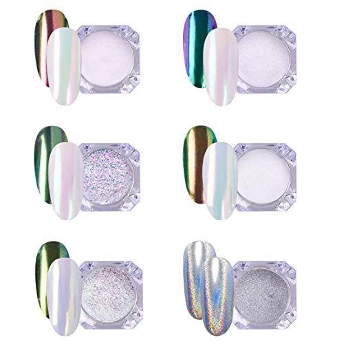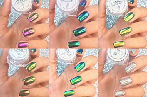 AIMEILI 6 colors Efecto Espejo Uñas Polvo Acrilico Para Uñas Esmalte de Uñas Cromo Pigmento Brillo y decoración de uñas Manicura Decoración Chrome Rainbow Camaleón Uñas Mirror Nail Glitter Powder