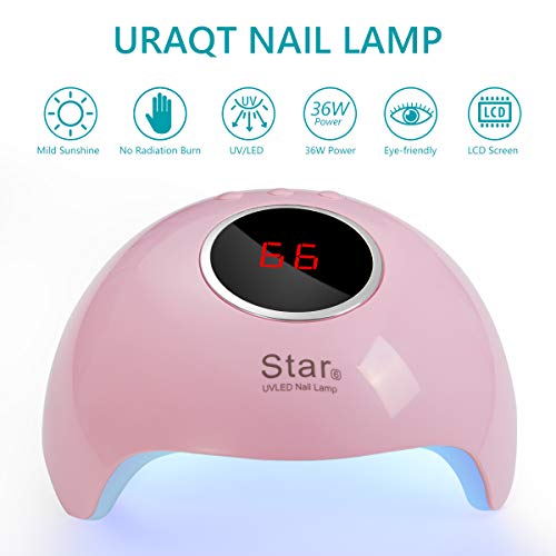 URAQT Secador de Uñas, Lampara LED UV para Esmalte de Uñas En Gel, Låmpara de Esmalte de Uñas don Sensor Automåtico de 36W con 18 Cuentas LED, Ajuste de 3 Temporizadores 30/60 / 90s