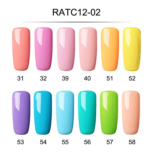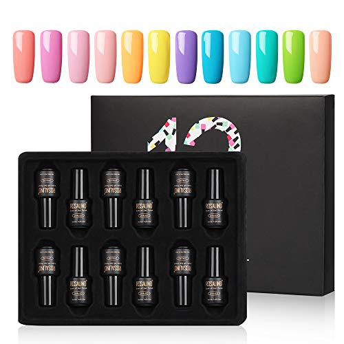 ROSALIND Esmalte Semipermanentes UV LED 12pcs Kit Uñas de Pintauñas Gel Soak off Summer Color Sólido de Larga Duración Esmalte de Uñas 7ml