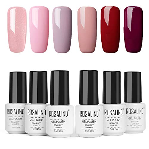 ROSALIND 15ml Esmaltes Semipermanentes de Uñas en Gel UV LED, kit de Esmalte de Uñas Nude 6pcs