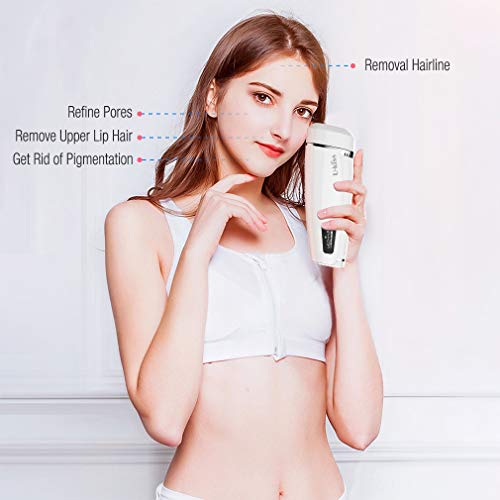 - ?【FOR FACE & BODY】El sistema de depilación está diseñado para el tratamiento no deseado del vello en la cara, las axilas, el área del bikini, los brazos, las piernas, el pecho, la espalda y el estómago. Use las gafas de protección(incluido en el paquete) para los ojos incluidos mientras trata el vello facial y evite los ojos.
