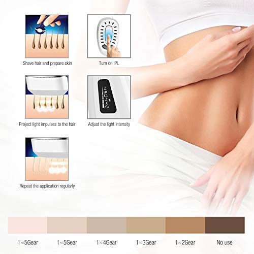 - Tratamiento suave, incluso en áreas sensibles del cuerpo: Si le importa la calidad, es seguro, rápido y simple, este producto es exactamente para usted. Se incluyen hasta una lámpara de larga duración y un sensor de tono de piel para garantizar que su piel y tono de cabello son adecuados, así como cinco ajustes de energía de luz ajustable para garantizar un tratamiento suave pero efectivo.