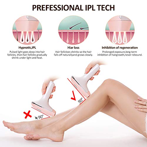 - Tecnología IPL para uso doméstico: KYG Depiladora de luz pulsada utiliza una tecnología basada en la luz llamada Intenso pulsado esencial (IPL), usa luz pulsada intensa profesional para apuntar con precisión a la melanina en los folículos capilares para desactivar la capacidad de regeneración del cabello, lo que resulta en una eliminación permanente del vello.