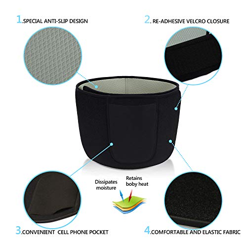- 【Diseño Portátil De La Bolsa Del Teléfono Móvil】El cinturón tiene una bolsa de teléfono de 16 * 10,5 cm, el diseño del teléfono celular (para casi el teléfono, por ejemplo: iPhone X, iPhone 7,7Plus, etc.) el bolsillo es muy conveniente e interesante. El bolsillo está ajustado suficiente para asegurarte de que el teléfono no se caiga durante el ejercicio, y puedes disfrutar de la música durante el ejercicio. Disfrutarás de tu estado físico y tendrás un cuerpo sano.