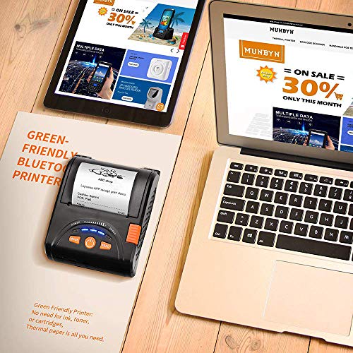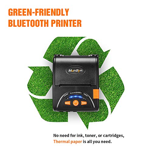 - 【Ecológicos, ligero y Portátil】MunByn Impresora de recibos es un producto respetuosa del medio ambiente. Utiliza papel térmica sino tinta ni cinta de carbón. Además, es muy ligero de 210g que podría llevarselo para trabajar fuera y muy buena para comida a domicilio con la cinturón incluyda.