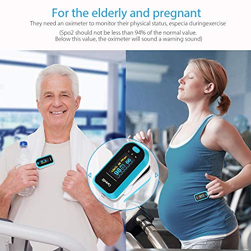 - ♛ 【Medición Precisa】 Determine su valor de SpO2 e intensidad de pulso en 10 segundos, y visualícelo de manera conveniente en las pantallas digitales OLED. Estos valores son sólo para referencia. Póngase en contacto con su médico personal para más detalles.