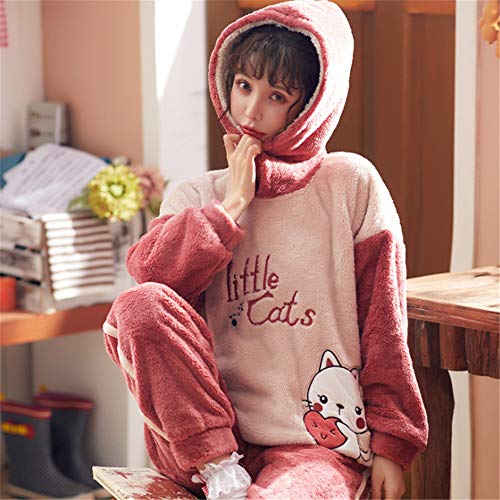 DUJUN Pijama de Franela Engrosamiento de Invierno para Mujer más Pijama de Terciopelo Coral cálido para niña Servicio de hogar de Invierno A-18 M