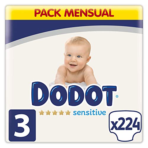 Dodot Sensitive pañales talla 3, 224 pañales, 6-10 kg