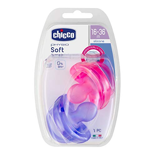 Chicco Physio Soft - Pack de 2 Chupetes de Silicona, 16-36 m, Color Rosa/Morado