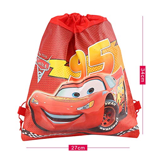 Qemsele 12 Piezas Bolsa Mochilas Bolsas de cumpleaños, Dibujos Animados Tema Reutilizable Bolsas de Fiesta cordón Mochila Bolsas para cumpleaños niños la Fiesta favorece la Bolsa (Car)