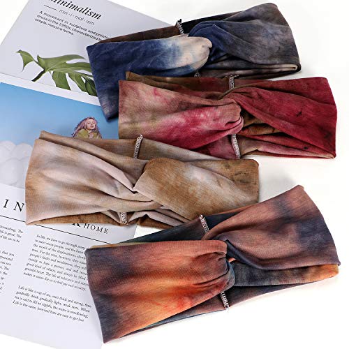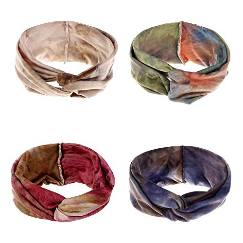 Bascolor Diademas Mujer Elástica Turbantes Flor impresión Diademas Deporte Nudo Banda para Cabello Yoga cabeza Wraps (4pcs tie dye diademas)