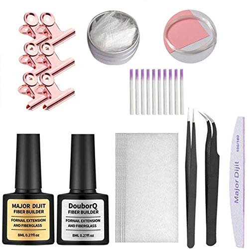 Anself Conjunto de Gel de Uñas de Fibra de Vidrio Sedas de Fibra de Vidrio Clips de Lima de Uñas Pinzas Generador de Extensiones de Fibra de Vidrio