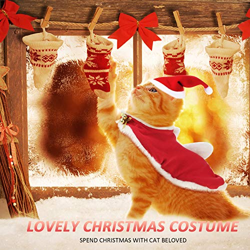 - Proceso de uso suave: combinado con hebilla de nailon y casco, el disfraz de gato es fácil de poner y quitar, la cinta del disfraz se puede ajustar a la longitud que desee; hay 2 bolas en la parte posterior de la capa de Papá Noel para mascotas y 2 campanas que cuelgan en la parte delantera, lo que agrega más vitalidad a la ropa y despierta el interés de sus mascotas