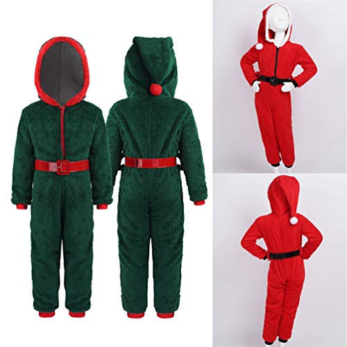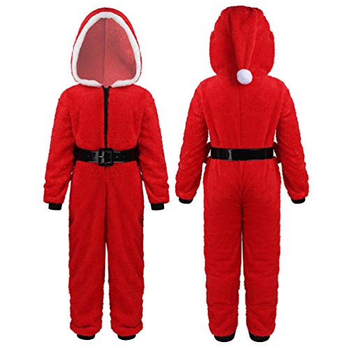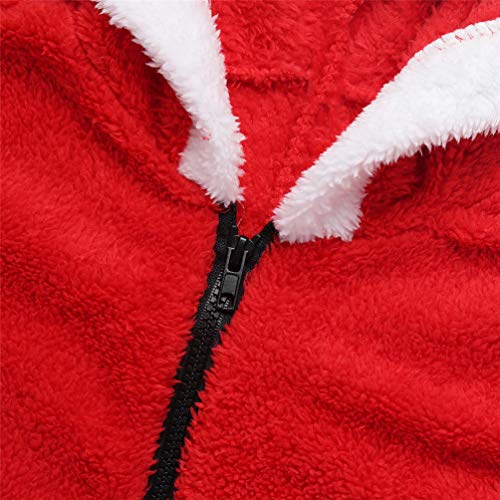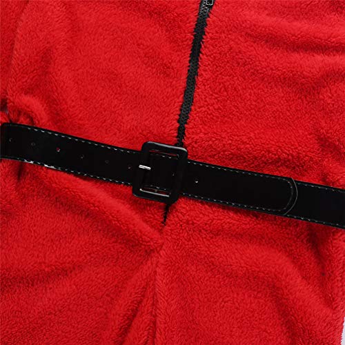 Niñas Trajes De Santa Ropa Suave Polar De Coral con Capucha Mono Pijamas con Cinturón De Fiesta De La Navidad del Partido De Cosplay,Rojo,L