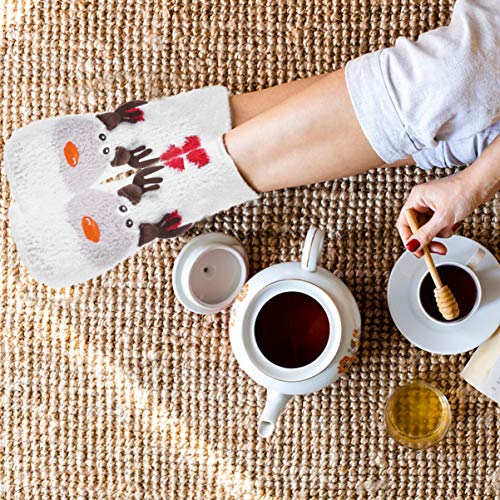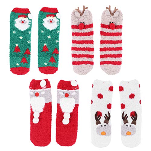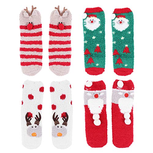 SOIMISS 4 Pares de Calcetines de Invierno Forro Polar de Punto Fuzzy Warm Christmas Slipper Calcetines Medias Esponjosas Santa Reno Elk para Hombres Mujeres Niña Regalo (Colores Surtidos)