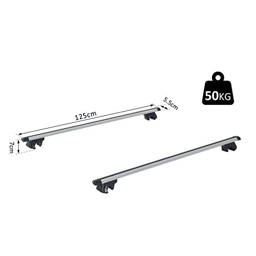 HOMCOM Barras de Coche Universal con Llave Tipo Baca Portaequipajes de Aluminio para Techo 120cm