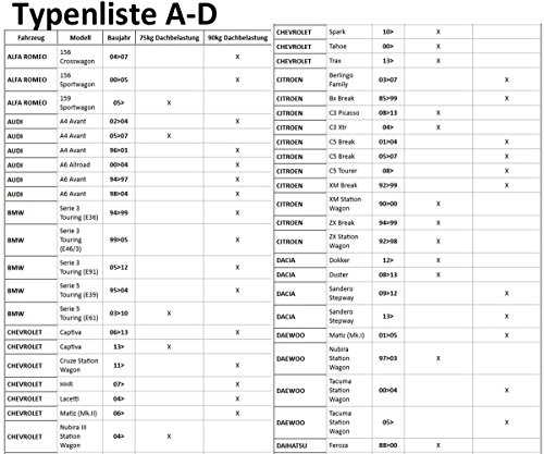 - [Instalación Uso amplio] Es bastante fácil de instalar este servicio pesado de coches SUV Tejado la barra cruzada, es adecuado tanto para el techo del automóvil descubierto con su pinza adicional y es útil para la fijación de su bolsas de viaje, estuches, o otras cosas como las bicicletas,escaleras, etc., sobre el techo del coche, conveniente y práctico.