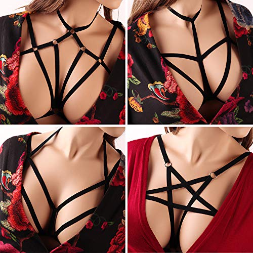 Comius Sharp Sujetador Conjuntos De Vendaje Mujeres, 4 Piezas de Arnés de Mujeres Arnés de Sujetador sin Copa Sujetador de Jaula Cruzada de Cuerpo Hueco para Materiales de Mujeres Chicas