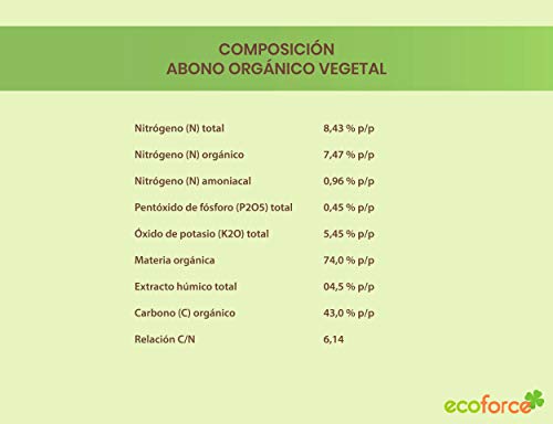 - Origen 100% orgánico y vegano. De alta asimilación con NPK 8-1-5 + 74% materia orgánica y ácidos húmicos.