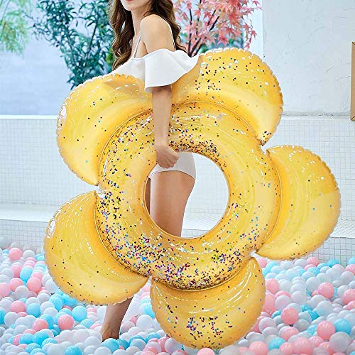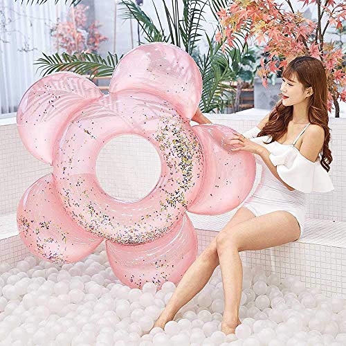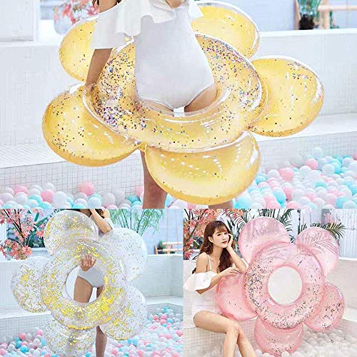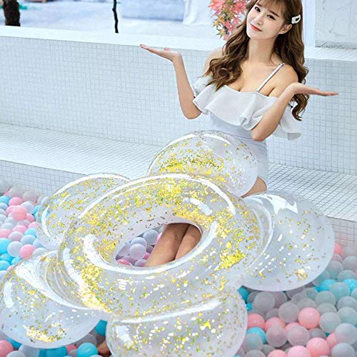 Kyman Anillo de natación, 140 cm de Lentejuelas Piscina Inflable del Flotador Girasol Brillante círculo de la Flor Flotador de la natación Piscina Piscina Tubo de Juguete, Claro (Color : Clear)