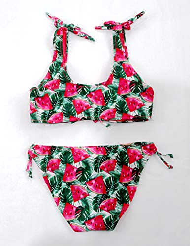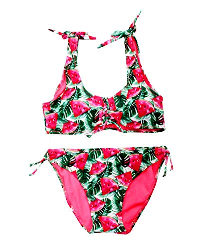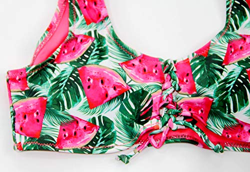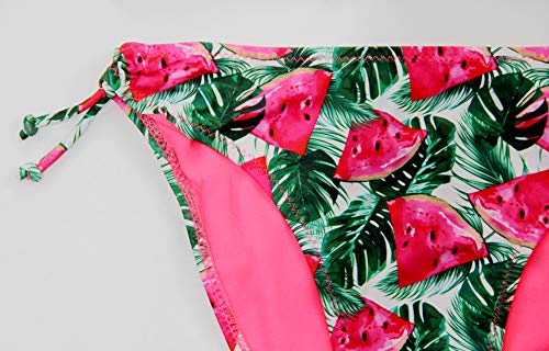 SOL Y PLAYA--Bikini para Mujer para Jovencita con Nudos Resistentes con Fruta de Verano Flor piña sandía (34, sandía)