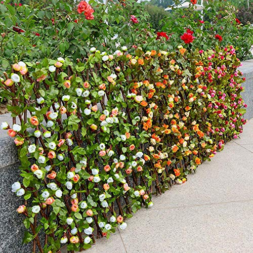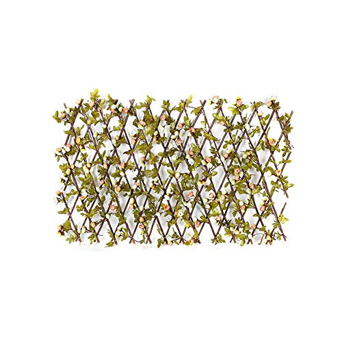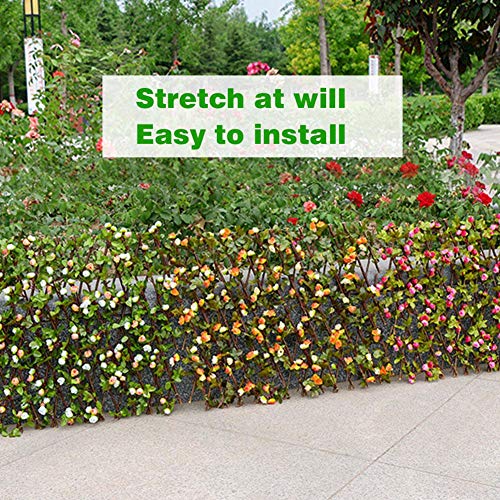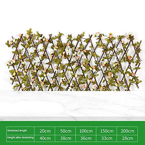 [3 colores / 2 tamaños] Valla de madera, valla de expansión, valla telescópica, material de sauce, hojas verdes, flores, planta de follaje artificial, fácil de instalar, venda de los ojos, decoración