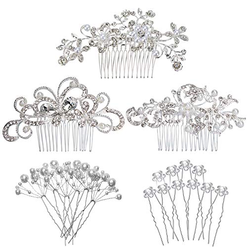 MOAMUN Conjunto De 23pcs Pelo Nupcial Peine Boda Pelo Lado Peina Novia Pin Cabeza Casco Cristal Perlas Flor Novia Dama De Honor