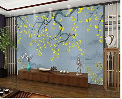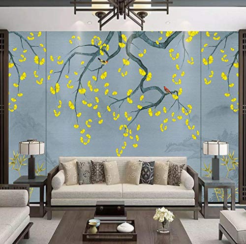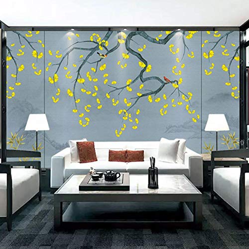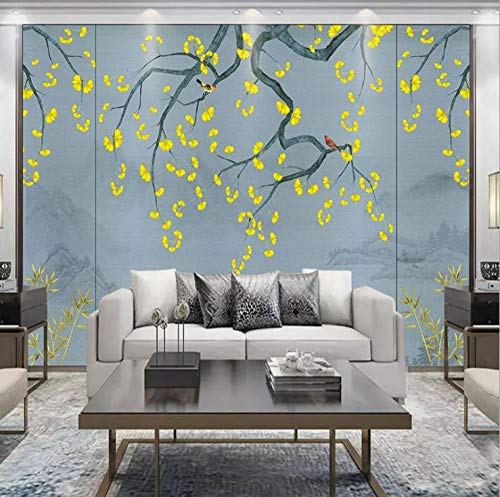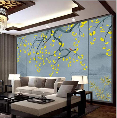Nuevo estilo chino antiguo ginkgo hojas de sauce de bambú flores y pájaros pintura de paisaje fondo de TV papel de pared decoración de sala de estar simple revestimiento de paredes-250X160CM