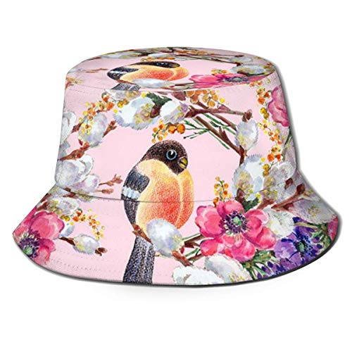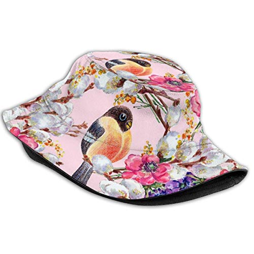 ZharkLI Sombrero de cubo Acuarela Flores Sauce con Pájaro Sol Pescador Gorra Sombrero al aire libre Protección UV Sombrero Plegable Ligero Transpirable Gorra de Viaje Negro