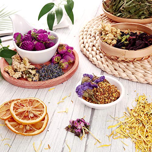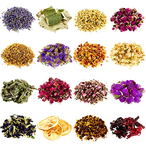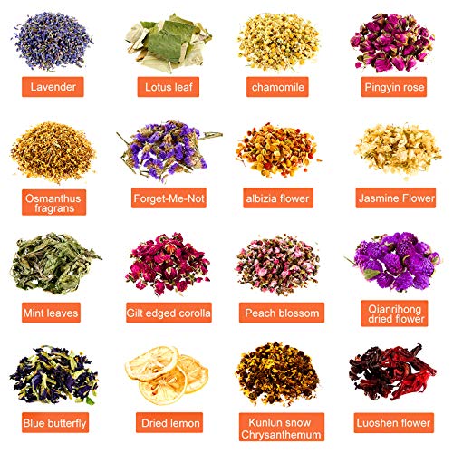 - Varios estilos: hay 16 tipos diferentes de flores y hierbas secas naturales, incluyendo lavanda, nomeolvides, rosas, crisantemos, menta y muchos otros tipos de flores y hierbas secas, que pueden satisfacer sus diferentes demandas en proyectos de bricolaje