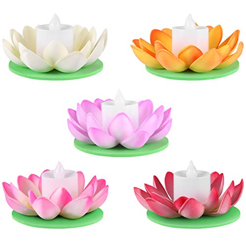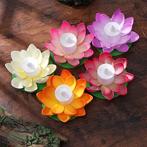 LEDMOMO 5 unids Lámpara de Loto Flotante Deseando Lily Candle Lotus Tealight Artificial Vela Flor Linternas Piscina Luz para Festival