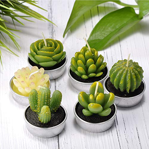 LA BELLEFÉE - 6 Velas Suculentas Plantas Cactus Decorativas para Casa Regalos para Halloween Navidad Cumpleaños Fiestas Boda Adorables Regalos para los Amantes de Suculentas