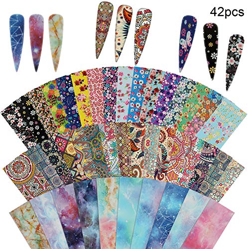 42 Piezas Nail Foil Transfer Sticker,MWOOT HologrÔfico Cielo Estrellado Nail Stickers Tips Wraps Transferencia Agua Pegatinas Uñas para DIY Manicura Decoración