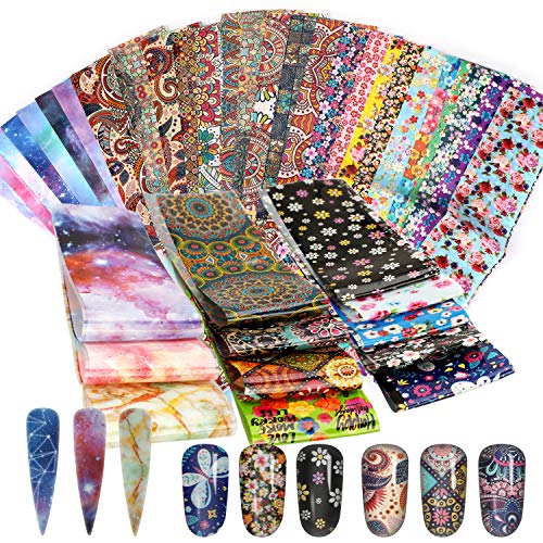 Mwoot 50 DiseƱos Nail Art Foil Sticker, Pegatina CalcomanĆas UƱas Transferencia Foils Transfer Cielo Estrellado Herramienta para Decoración de UƱas Manicura DIY