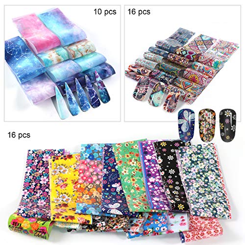 - Varios patrones: este juego de arte de uƱas incluye 90 patrones y colores diferentes de pegatinas de transferencia de papel de aluminio, suficientes para satisfacer sus diversas necesidades de arte de uƱas.