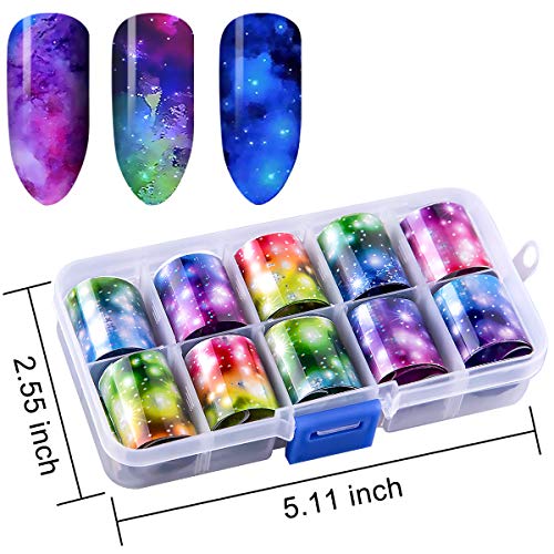Mwoot 20 DiseƱos Nail Art Foil Sticker, Pegatina CalcomanĆas UƱas Transferencia Foils Transfer Cielo Estrellado Herramienta para Decoración de UƱas Manicura DIY