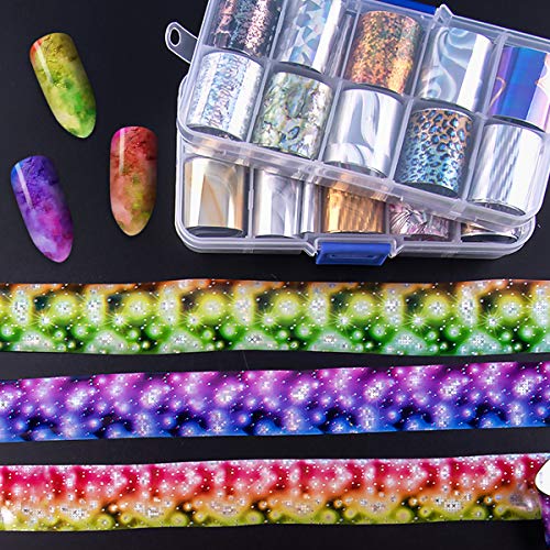 10 Rolls Nail Foil Transfer Sticker, Mwoot HologrĆ”fico Nail Stickers Tips Wraps Sticker Glitters Kit de decoración para manicura AcrĆlico DIY Decoración (2.6cm100cm)