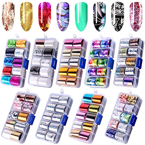 Ebanku 40 DiseƱos Foil para UƱas Transfer, Transferencia Pegatinas CalcomanĆas UƱas HologrĆ”fico Nail Art accesorios transferencia papel Nail Stickers Tips Wraps Foil Transfer Sticker