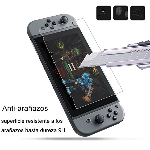 - Nintendo Switch cristal templado con superficie recubierta resistente a los arañazos [Dureza 9H] resiste objetos afilados como cuchillos y llaves. Después de probar Nintendo Switch, se ve como nuevo, sin rasguños, no hay daños, no hay grietas.