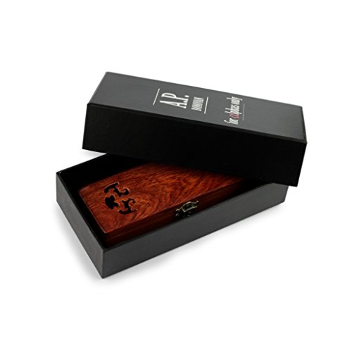 - Cada navaja de afeitar de A.P. Donovan viene en una caja decorativa de madera auténtica. El elegante carácter de la caja de regalo se destaca por el grabado de agujeros en la tapa y el cierre de metal finamente trabajado. Un inserto de espuma con revestimiento de terciopelo en el interior evita arañazos en el mango y la hoja de la navaja de afeitar. Como estuche de regalo personal o para un transporte seguro en viajes: esta caja demuestra honor a una navaja de afeitar de alta calidad.