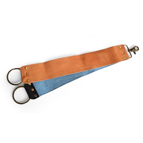 - El A.P. La correa de cuero Donovan está hecha de piel de vaca, por un lado y el otro es de tela de lino resistente. El efecto de lijado del cuero corresponde a aproximadamente el grano 100.000 de una piedra de afilar. Con el mosquetón de metal, la correa se fija a un gancho de pared adecuado. El A.P. La pasta de lijado Donovan se compone de varios componentes minerales y partículas de lijado microfinas y refuerza el efecto de lijado de la correa de cuero alrededor de dos veces.