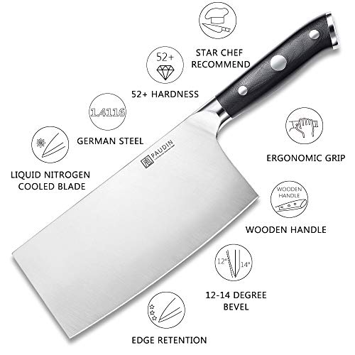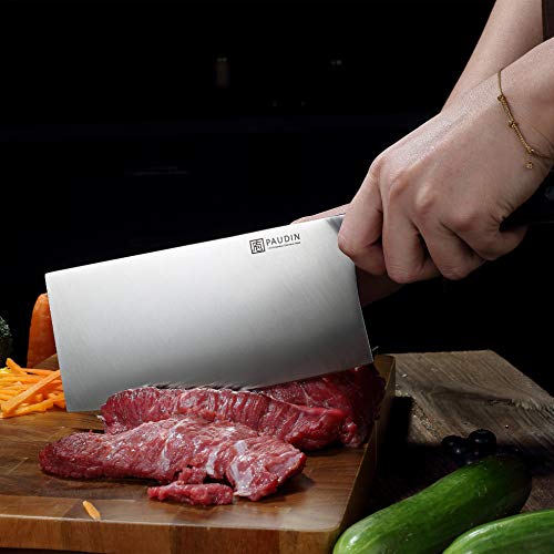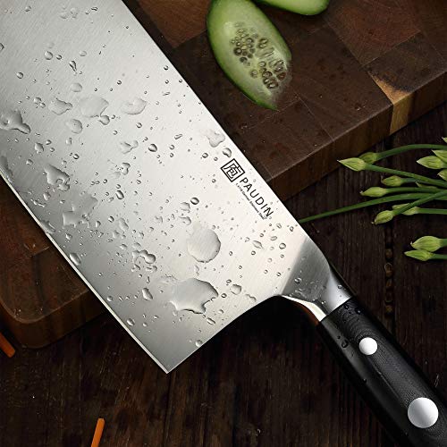 PAUDIN - Cuchillo chino de 17 cm afilado de acero HC con mango G10, resistente al óxido y al desgaste, fácil de limpiar