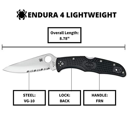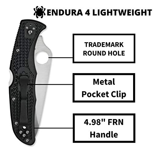Spyderco Navaja, Taschenmesser Endura 4 Lightweight, Schwarz, C10PSBK, Negro