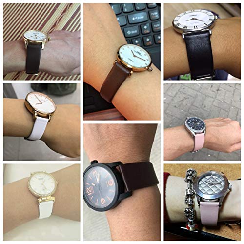 - * [Cuero de alta calidad] Esta correa para el reloj está hecha con auténtica piel de becerro de grano completo, con herrajes de acero inoxidable 304 pulido. Clásica correa de reloj de cuero ultrafino, suave, suave y cómoda, Principalmente adecuada para su reloj delgado y simple. Haga su muñeca más elegante.