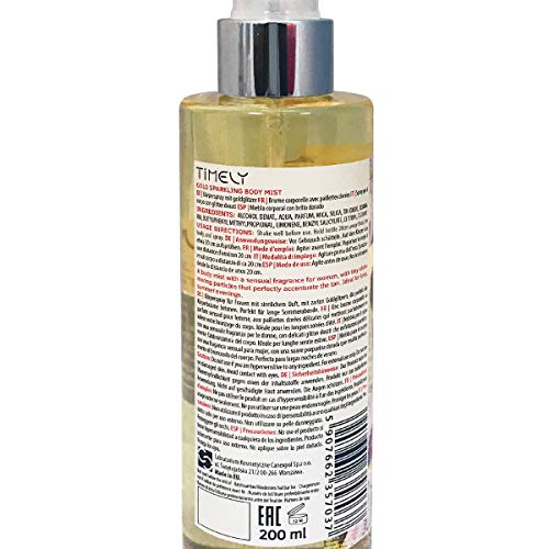 Timely - Bruma corporal dorada con fragancia sensual, 200 ml