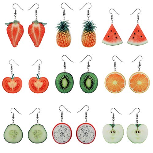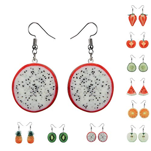 1 par de pendientes de estilo coreano de piña y fresa Pendientes de estilo de niña, gota de fresa Mujer Fruta cuelga pendientes de oreja Pendientes de oreja de verano