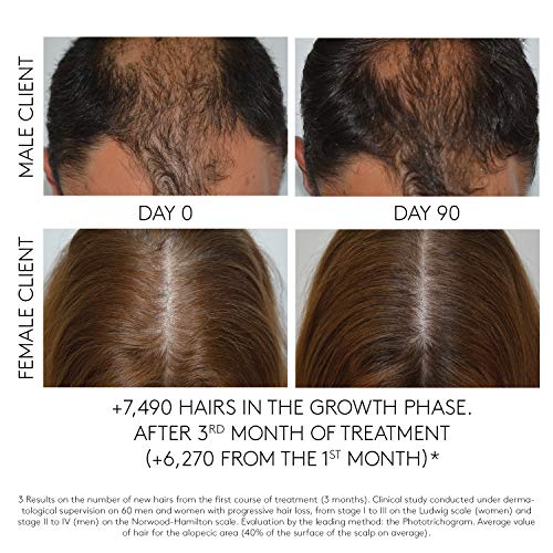 - Se enfoca en las tres principales causas de adelgazamiento hereditario del cabello: vascular, hormonal y tisular