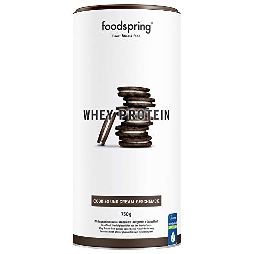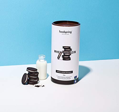 foodspring Proteína Whey, Sabor Cookies & Cream, 750g, 100% proteína de suero de leche, Proteína en polvo para el desarrollo muscular