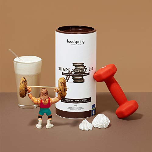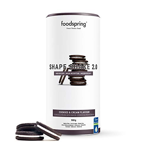 foodspring Shape Shake 2.0, Cookies & Cream, 900 g, Sustitutivo de comidas para controlar el peso, Alto en proteínas y fibras